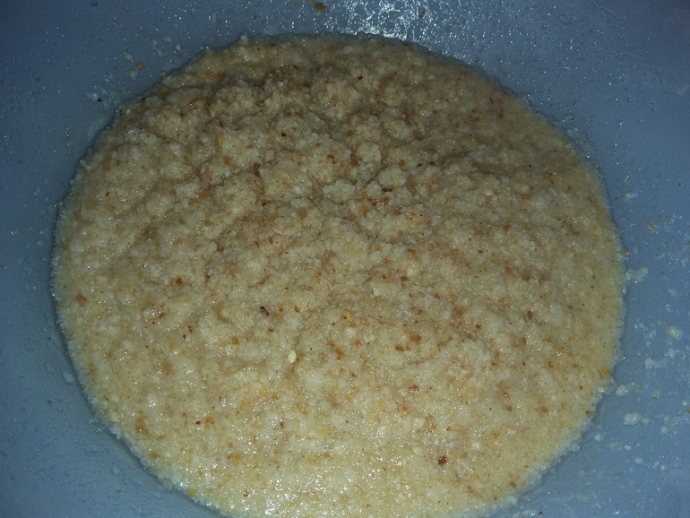Замочить пол стакана сухарей в половине стакана теплой воды: