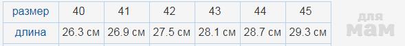 размер: 40-26,6 41-27,2 42-27,8 43- 28,4 44- 29 45-29,6