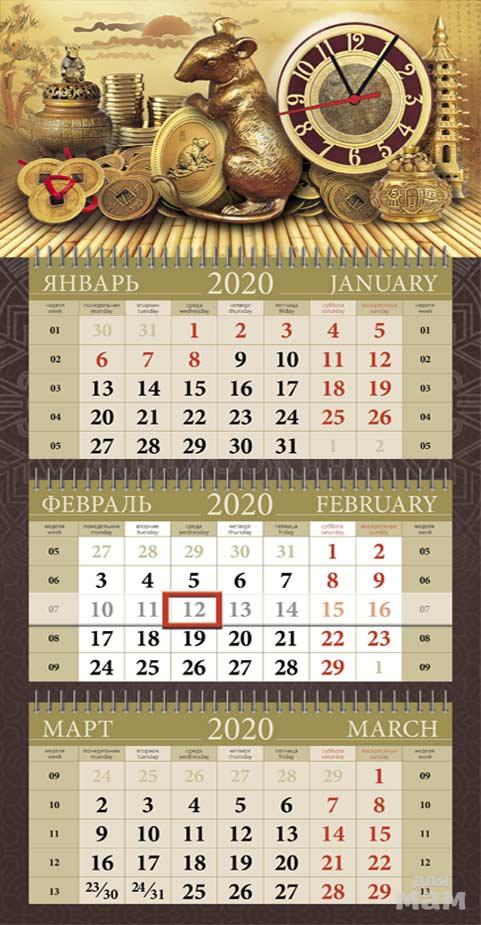3-СЕКЦИОННЫЙ КАЛЕНДАРЬ С ПОСТЕРОМ ИЗ ОБЪЕМНОГО ПЛАСТИКА С ЧАСАМИ, подарочная коробка