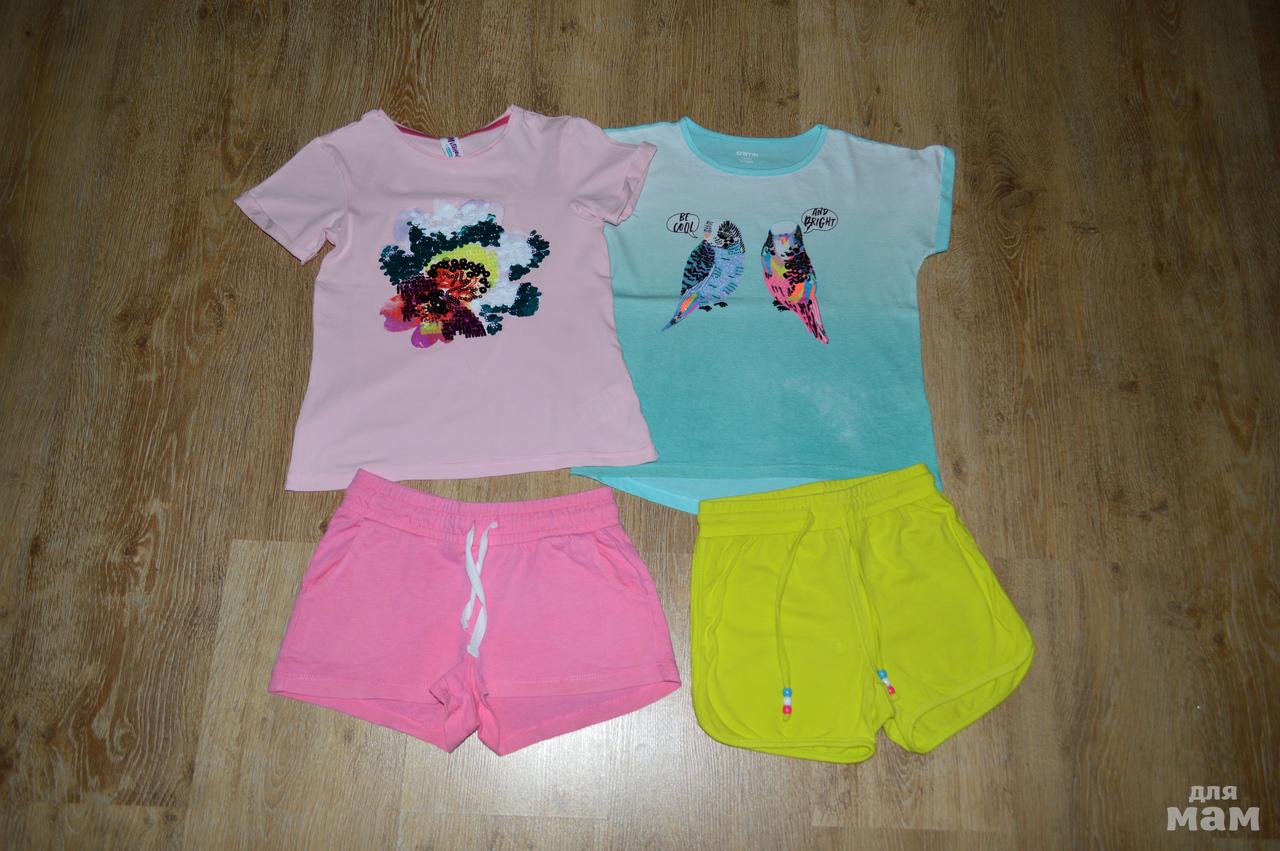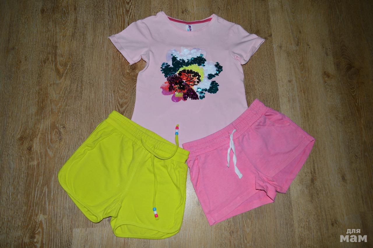 Продам два комплекта в отличном состоянии, по 650р., у зеленой футболочки попугайчики в блестках, у розовой рисунок из пайеток.Очень удобно и красиво! Оба отдам за 1100р.Могу выслать по почте +200р.
