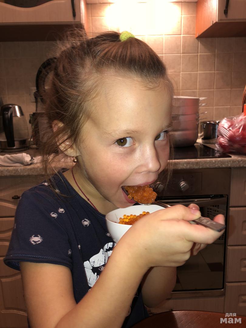 Первый раз в жизни купили непотрошонную по Акции) рыбка вышла на 130 рублей). И нашли там икорку. По ощущениям грамм 150, засолили и почти всю съели). В нашем доме икру любит только дочка. При чем с самого детства. Муж может когда очень голодный съесть бутербродик, а я даже если буду умирать с голоду, икру есть не стану)))