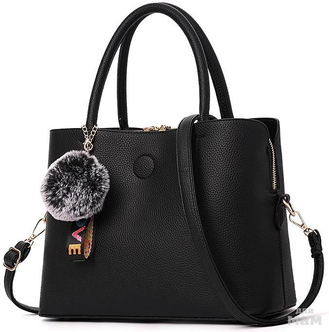 Повседневная сумка из экокожи. Фурнитура - металл под серебро. Без подкладки. Сумка с 3 отделениями, основное закрыто на застёжку-молнию, а 2 по бокам на кнопках. Внутри основного отделения маленький потайной карман, на молнии и карман под телефон. Сумка оснащена 2 ручками и съёмным длинным регулируемым плечевым ремнём.