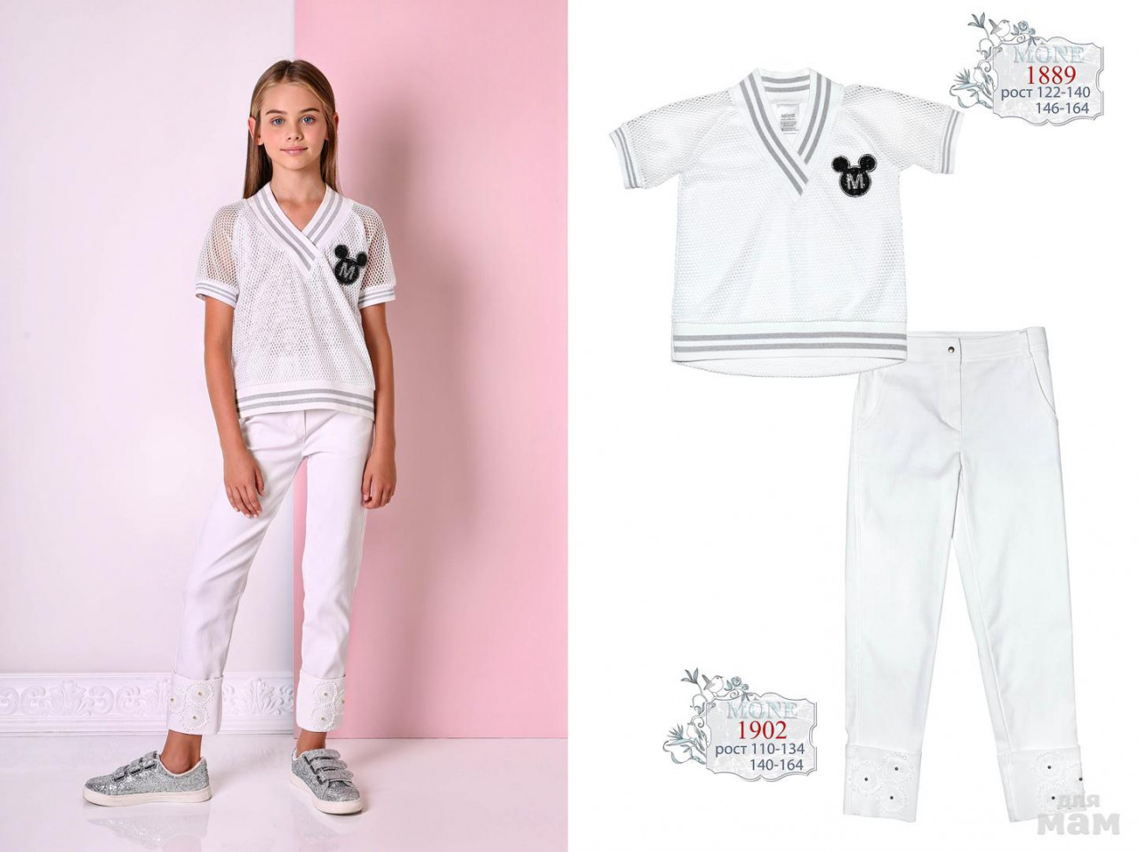 1894 брючки котон-жатка, паетка монеты-перламутр 110-134 белый5% лайкра 5% вискоза 90% хлопок цена 20,95 + орг