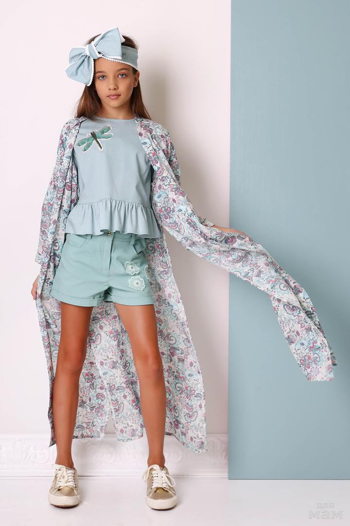 1905-1 куртка, джинс стрейч однотон, макраме 140-164 ментол 60% хлопок 30% синтетика 10% лайкран цена 47,17 + орг