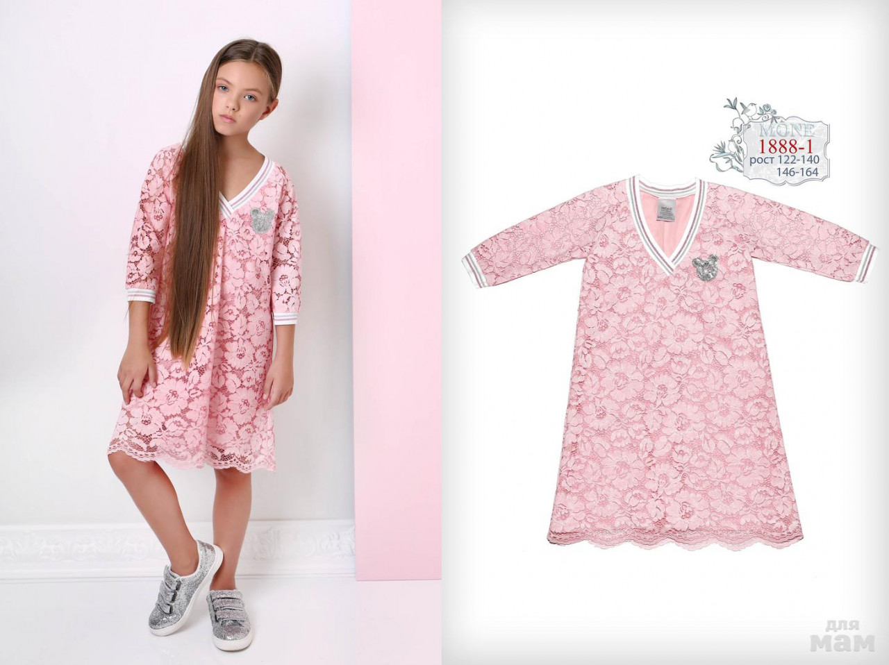 1888-1 платье кружево, джинсовый эффект 146-164 лотос 50% полиэстер 50% хлопок подклад 100% хлопок цена 32,49 + орг