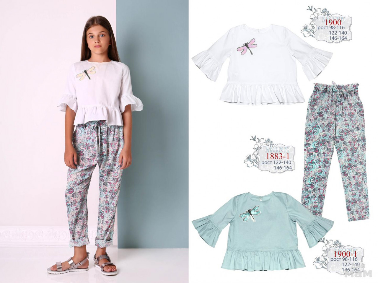 1887 брючки трикотаж, двунить ткань 140-164 ментол 5% лайкра 5% вискоза 90% хлопок цена 26,79 + орг