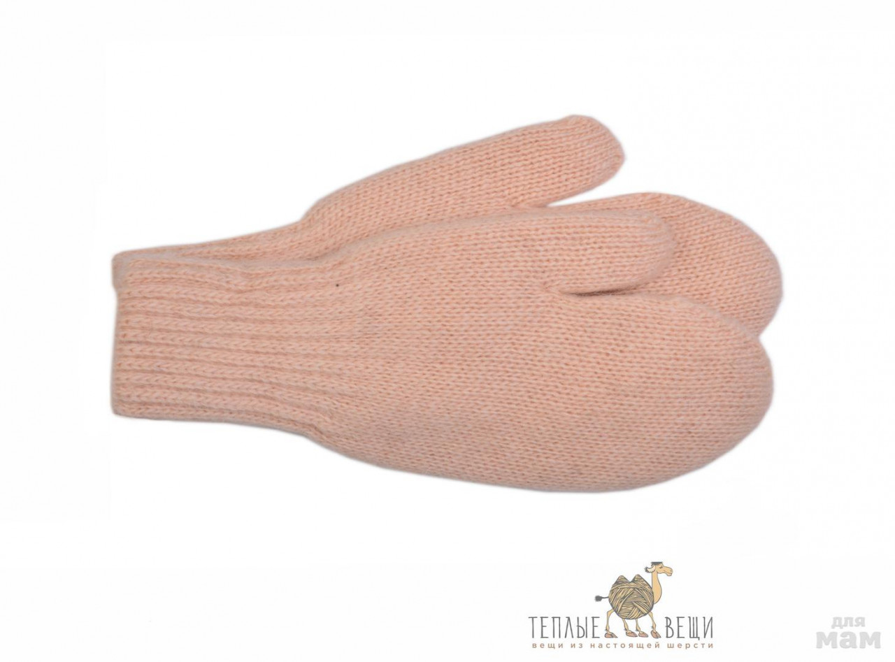 57)Варежки взрослые из верблюжьей шерсти бежевые , 280р