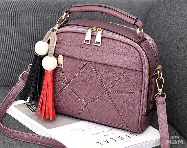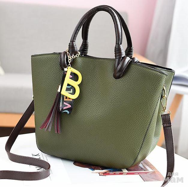 Повседневная сумка из экокожи. Фурнитура - металл под золото. Подкладка - текстиль. Сумка с 3 отделениями, сверху закрывается на кнопку, между отделениями 2 кармана на молнии. Внутри основного отделения маленький потайной карман. Сумка оснащена 2 ручками и съёмным длинным регулируемым плечевым ремнём.