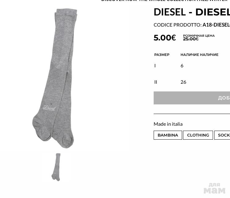 Размеры колгот Diesel I= 2г/4г