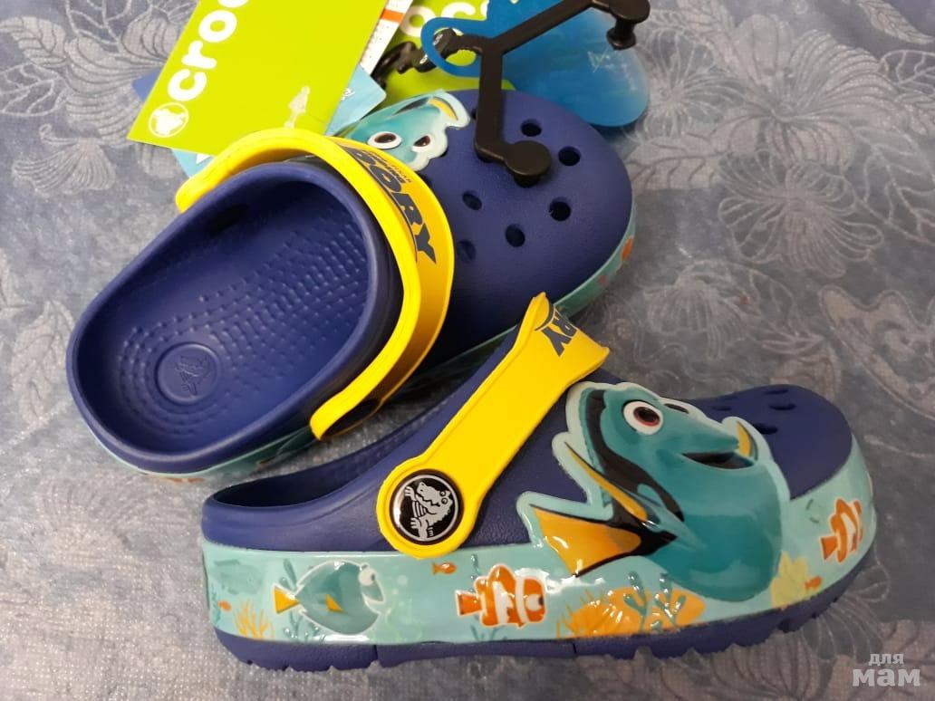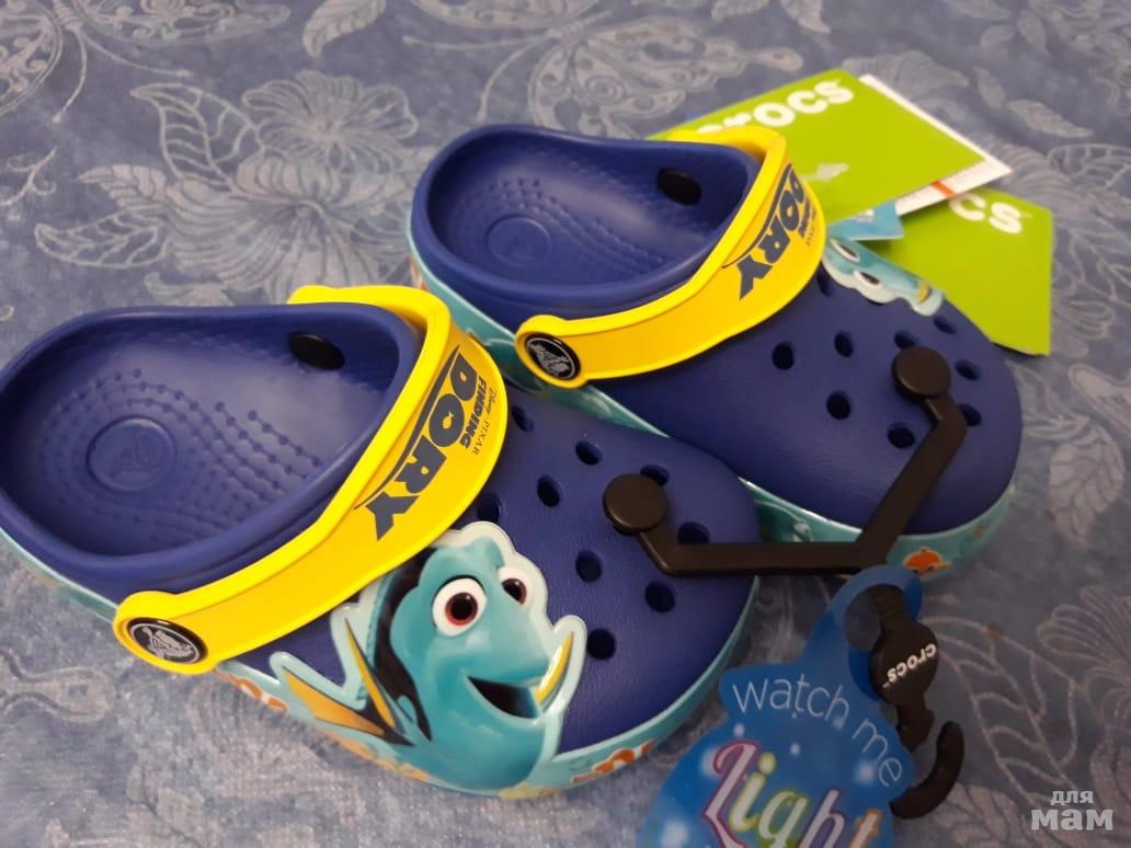В наличии размер 23 кроксы Дори, со светодиодами!!! Не работают диоды на 1 тапочке. Новые, оригинал! Отдаю тому кто первый оплатит. Кроксики волшебные