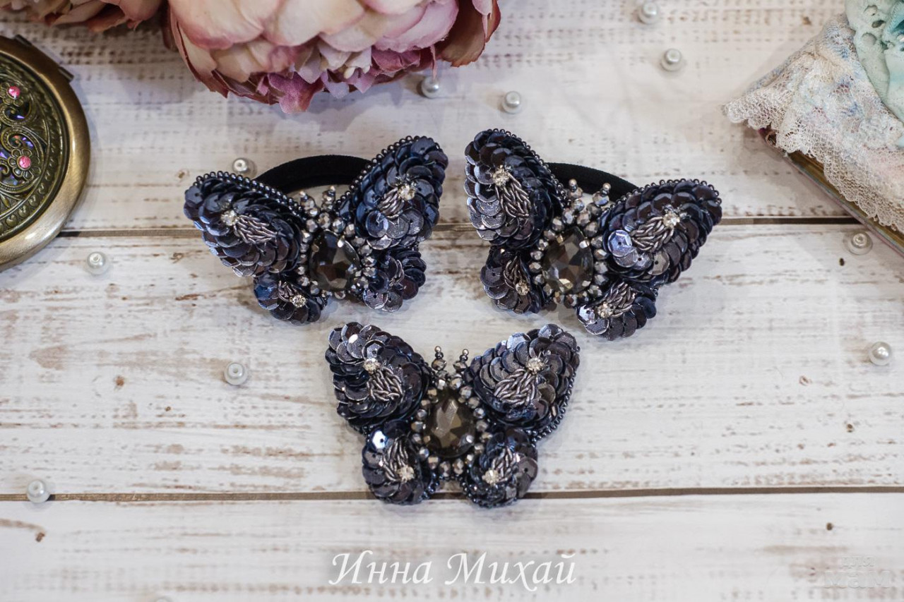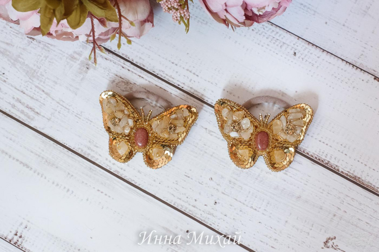 12. Брошь и 2 резиночки Бабочки. Проданы. На заказ.