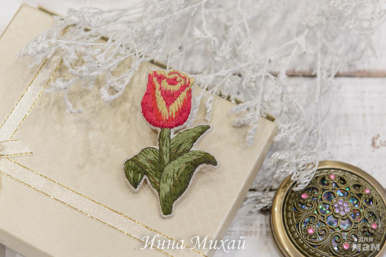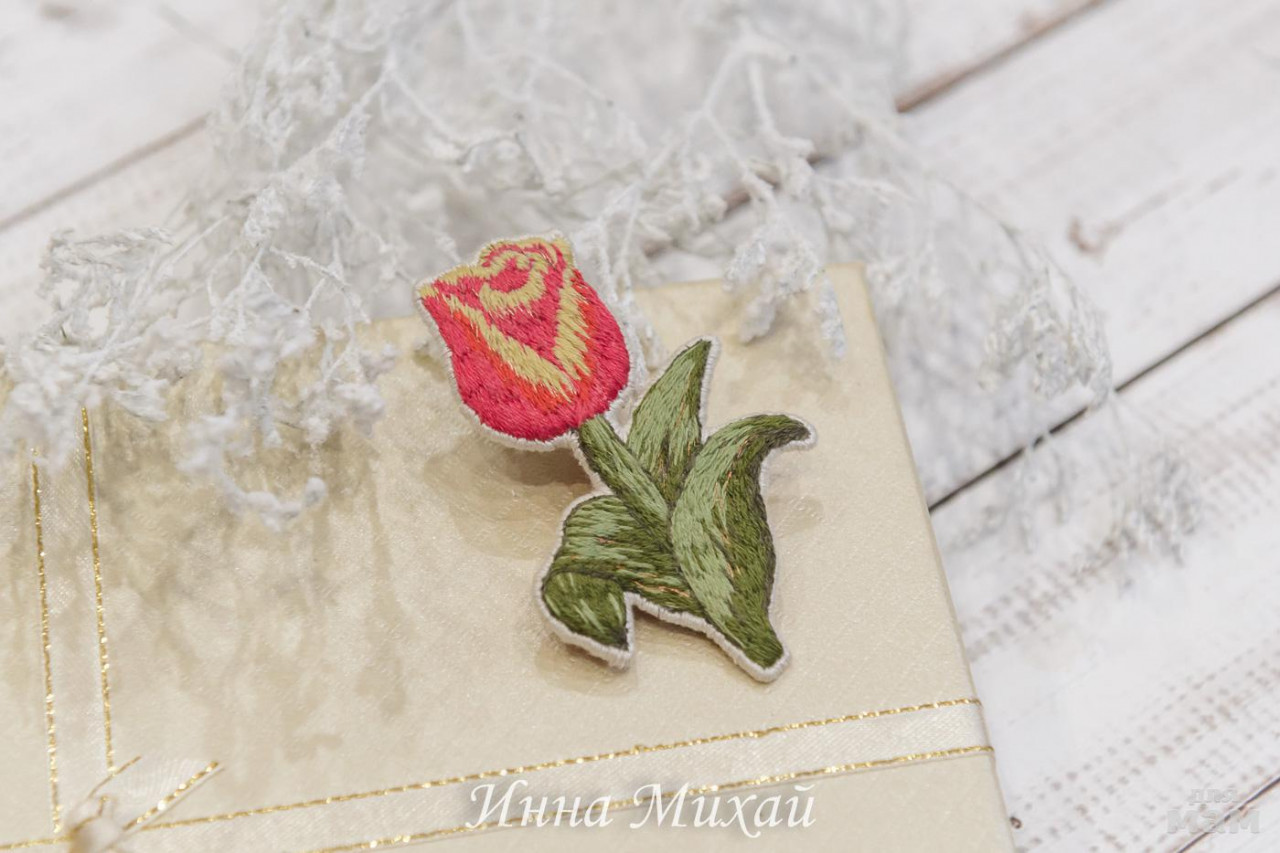 22. Брошь тюльпан. Брошь вышита гладью, обратная сторона - натуральная замша, японкая булавочка. Продан. Без повтора.