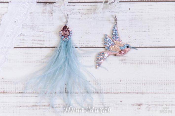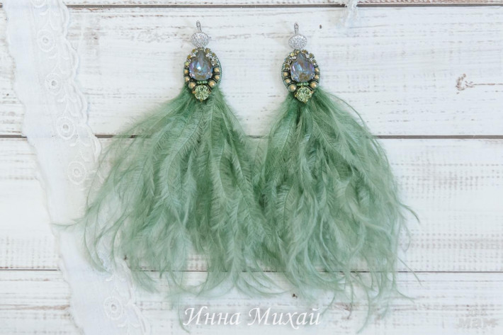 40. Серьги с перьями. Кристаллы и бусины Сваровски. Проданы.