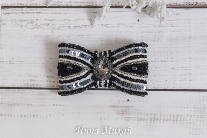 52. Чёрно - белый элегантный бантик . Бантик продан