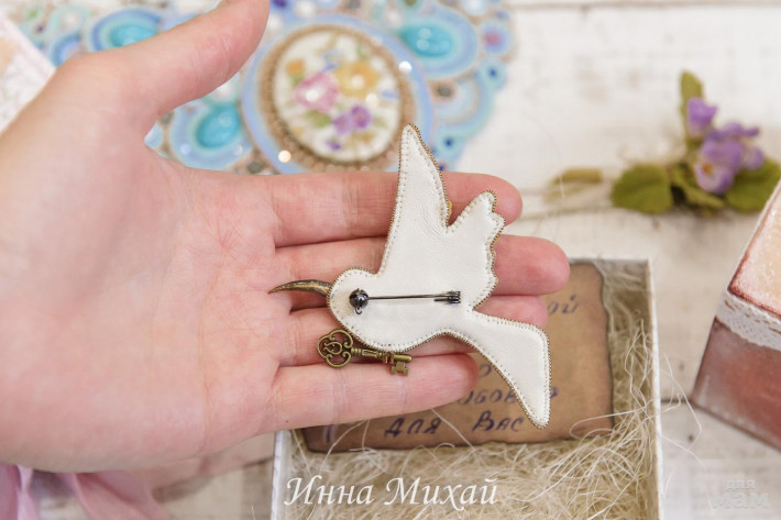 43. Брошь создана под впечатлением от картины современного художника. Нашла её и не смогла выкинуть из головы, знаете, бывает так, мне даже ночью снилось как я её вышиваю Ну, думаю, значит точно нужно. Понимаю, оригинальная. Но я должна была её вышить. Брошь продана. Изнанка - натуральная кожа и японская булавка.