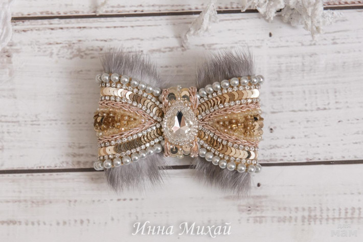 51. Золото - серебро. Бантик продан. Натуральная норка, бусины, кристаллы, пайетки, стразовая цепочка. Мерцает невероятно, фото как всегда золото плохо отражает(((