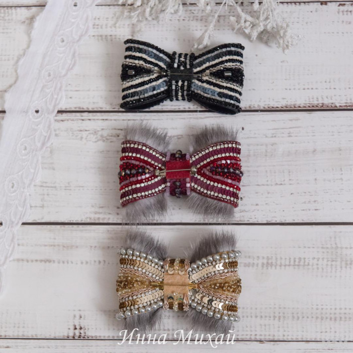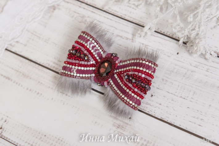50. Бордо. Бантик продан. Натуральная норка, бусины, кристаллы, пайетки, стразовая цепочка.