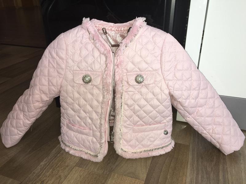 Б/у курточка, состояние новой вещи в идеале, очень красивая размер 6 мес можно носить с 4 до 9 мес, смотря если не крупная принцесса. Джинсики потрясающие, переливаются блестками размер 6 мес, мы одевали пару раз с 3 до 6 мес.