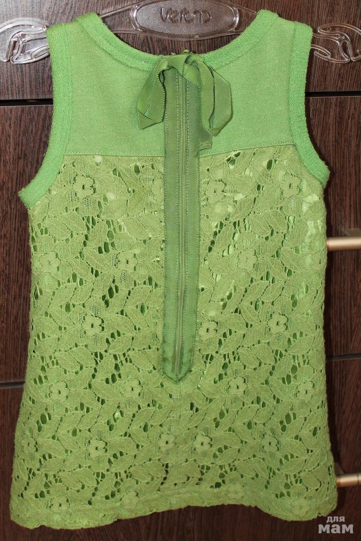 Размер 2. На 1,5-2 года. Состояние нового, одели один раз на отдыхе. Цвет ярче зеленый как на последнем фото платье для праздник monnalisa. Сначала можно одевать как платье, потом как тунику. Оригинал Верх с вкраплениями золотых нитей, подол атласный, крупные камни.В жизни насыщенный травянной зеленый. Без нюансов. Длина 41 см, ширина в грудке 25 см*2