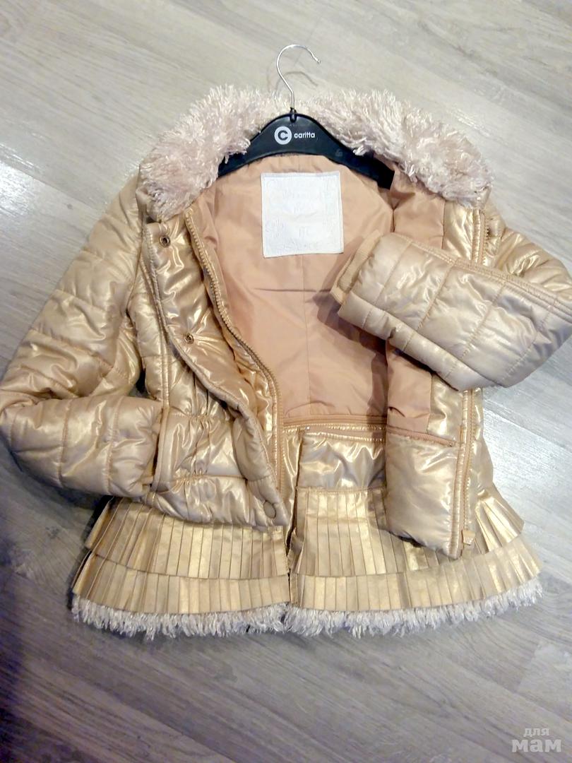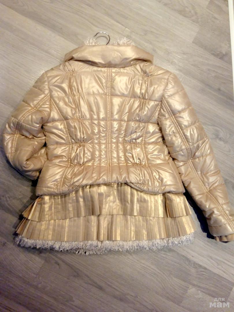 Куртка золотая с отстегивающейся баской плиссе, что позволяет носить ее и в укороченном, и в удлиненном вариантах. Одета была несколько раз за сезон, состояние новой! -осень/весна, 8 лет (128 рост). Возможна примерка в Медведково, по России почта.