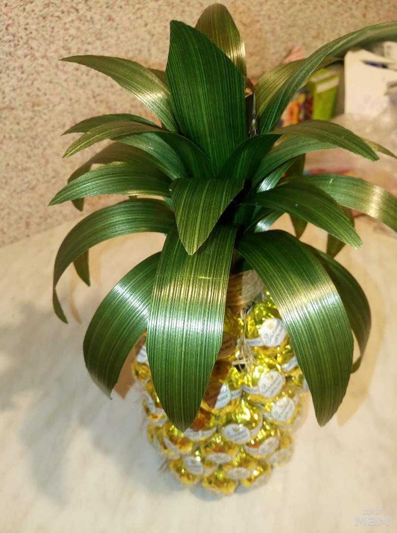 Новогодний ананас из шампанского и конфет станет отличным подарком друзьям, коллегам, учителям, воспитателям, да и просто для себя)