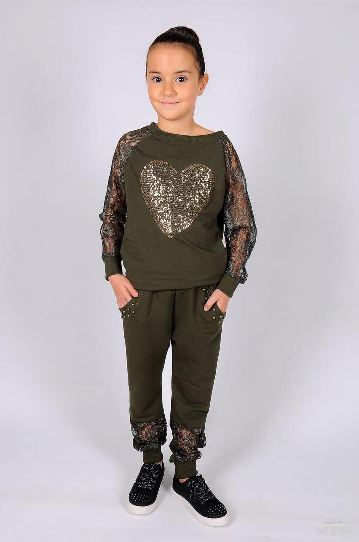 Нарядный набор двойка на девочку с нежным кружевом и сердечком с паетками и бусинками. Отличное качество 👍👍👍