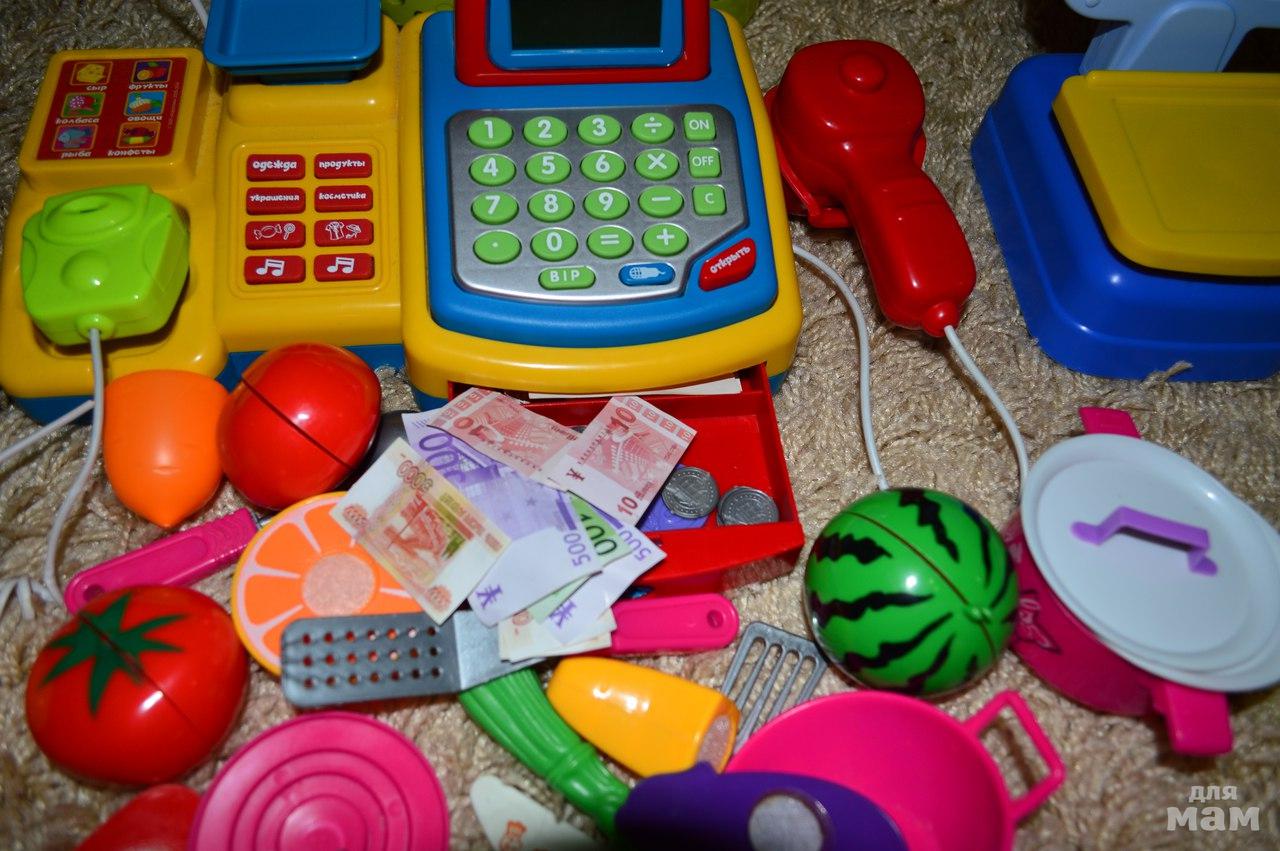 Продам Кассу Фикси Магазин, который понравится абсолютно всем! Учимся играя! LCD-экран с функцией калькулятора, с помощью которой ваш ребенок сможет рассчитать стоимость покупки. Также имеется отделение для денег, закрывающееся на ключ, весы, детектор подлинности купюр и сканер для зачета товара, кнопки со звуком и громкоговоритель. Весы для фруктов и овощей. И набор товаров с посудой- все, что на фото! Все в отличном состоянии!