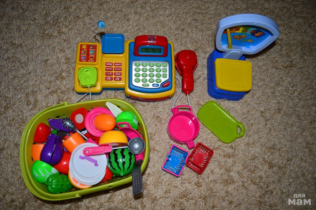Продам Кассу Фикси Магазин, который понравится абсолютно всем! Учимся играя! LCD-экран с функцией калькулятора, с помощью которой ваш ребенок сможет рассчитать стоимость покупки. Также имеется отделение для денег, закрывающееся на ключ, весы, детектор подлинности купюр и сканер для зачета товара, кнопки со звуком и громкоговоритель. Весы для фруктов и овощей. И набор товаров с посудой- все, что на фото! Все в отличном состоянии!