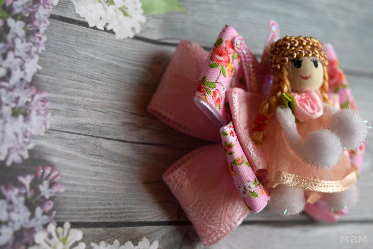 Феечка поселилась на большом бантике ( около 10 см) и мечтает побывать с вами на всех праздниках и торжествах!