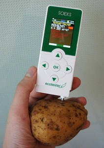 __________ Нитрат-тестеры S***o*e/*k*/sпредназначены для экспресс-анализа содержания нитратов в свежих овощах, фруктах и свежем мясе, а также в продуктах, применяемых для питания детей. Проверка на содержание и количество нитратов в анализируемом продукте производится путем прокалывания измеряемого продукта зондом, расположенным в нижней части прибора. В памяти прибора таблица ПДК содержания нитратов для 32 видов фруктов ,овощей и свежего мяса.