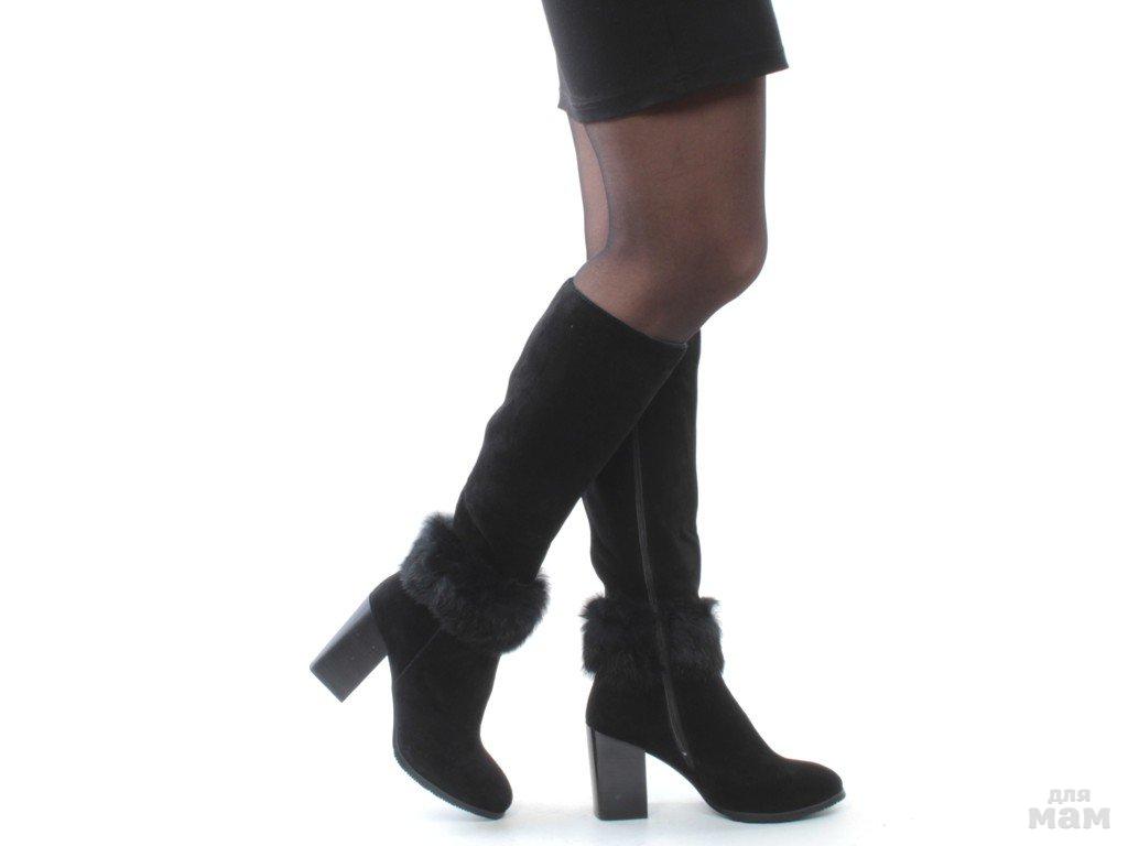 18R-07Y1 Q748F BLACK Сапоги женские (натуральная замша, натуральный мех (евромех))