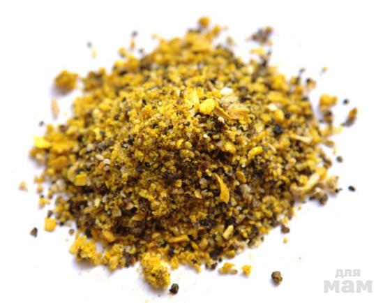 Состав : Смесь перцев , хмели - сунели , кориандр , петрушка , соль , чеснок . базилик,перец чили , дробленый лук порей , паприка.