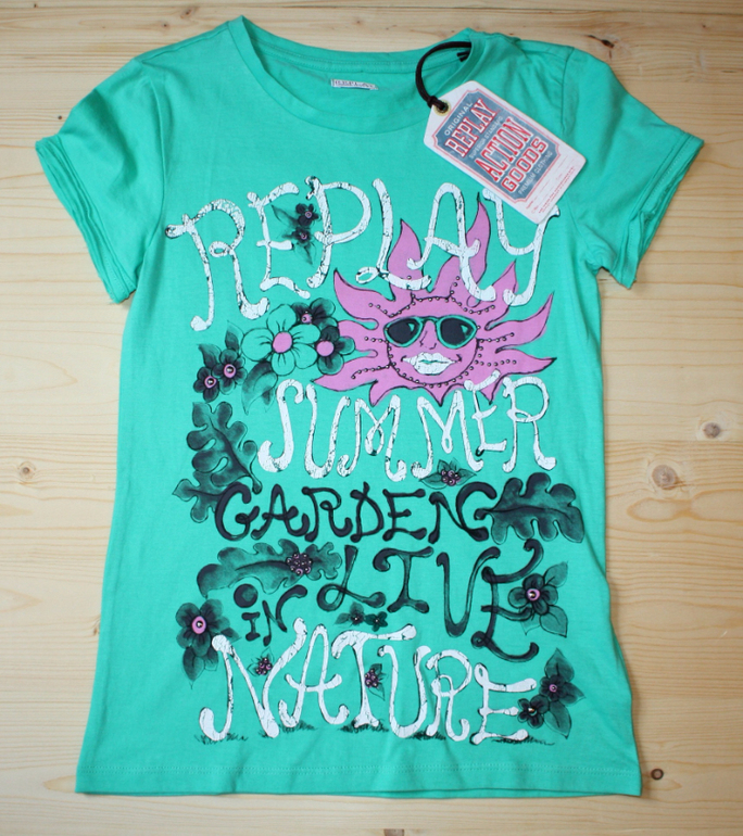 2. Футболка REPLAY (ИТАЛИЯ). На рост 146 см. Длина 53 см. В груди 38 см. 1200 рублей.