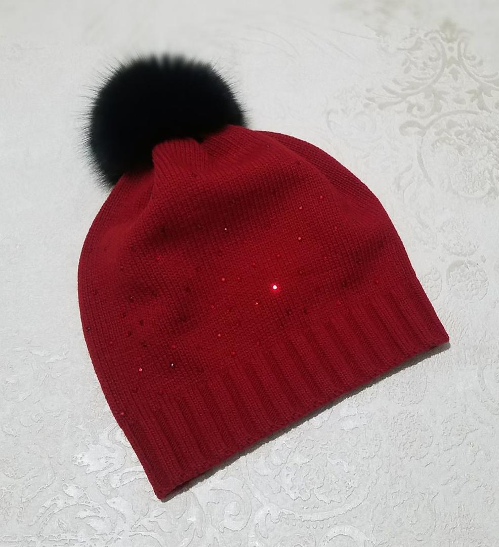 Меринос экстрафайн. Цвет бордо. модель со спущенной макушкой. Помпон 16 см. ОГ 53-55 - 1500.