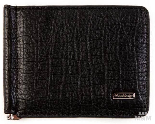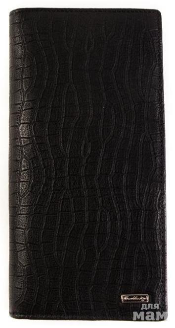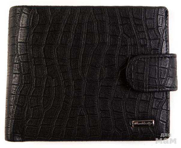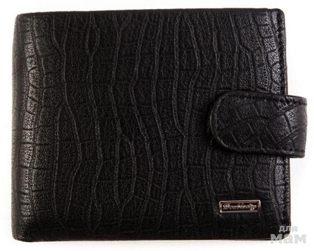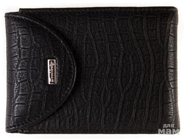 Натуральная кожа. Закрывается клапаном на кнопке. 3 отделения для купюр (одно из них на молнии), карман для мелочи на кнопке, 7 кармашков для пластиковых карт, 2 потайных кармана, отделение для пропуска.