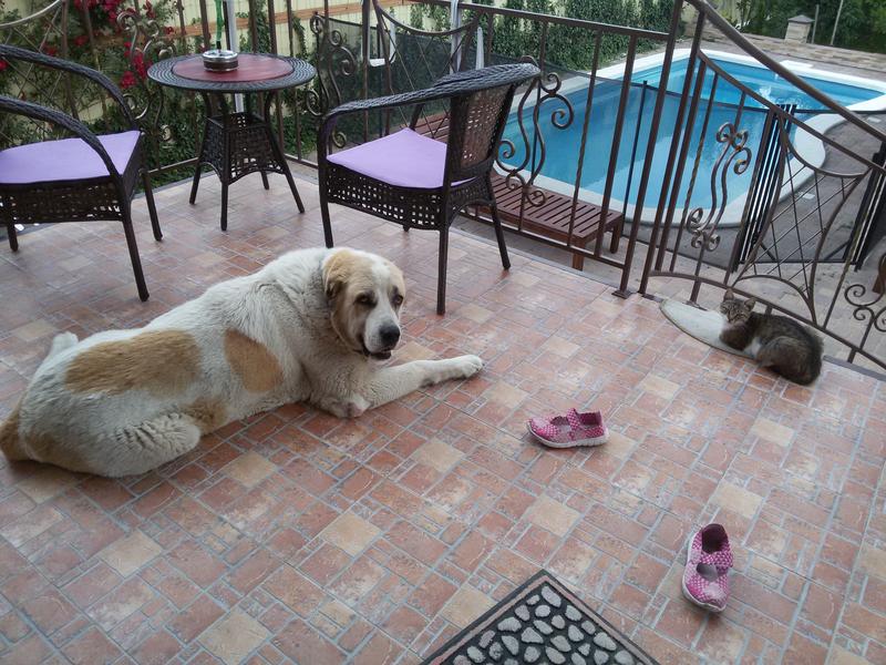 Ехали на микроавтобусе с детьми, тремя кошками и собакой. Переезд занял 17 часов (от Домодедова до станицы Анапской). Честно говоря, очень пугал нас этот "марш бросок". Больше всего переживали за 8- летнюю алабая Тундру, но она очередной раз показала себя большой умницей. Несмотря на то, что до этого практически никогда не ездила в машине, вела себя спокойно, лежала, периодически вставала размять ноги, а потом ложилась на другой бок. А вот от кого не ожидали подвоха, так от нашего кота Балабаса, он проявил себя как настоящий трус и эгоист. Первые два часа дороги орал не переставая, потом каждый час минут по 10. Приехав в новый дом, только на пятый день спустился на первый этаж.