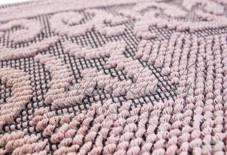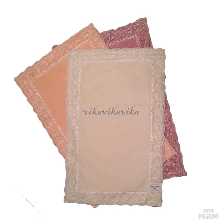 4) Изысканный и стильный коврик в ванную комнату с нежным кружевом. Кружевная отделка в виде нежных цветов по периметру всего коврика. Натуральный хлопок и высокая плотность махровой ткани(не менее 700 гр/м2) обеспечивают великолепную впитываемость и высокую стойкость материала. Широкая цветовая гамма, пересекающихся по тональности расцветок, позволяет великолепно комбинировать коврики в зависимости от зонирования ванной комнаты или расцветки отделочных материалов.