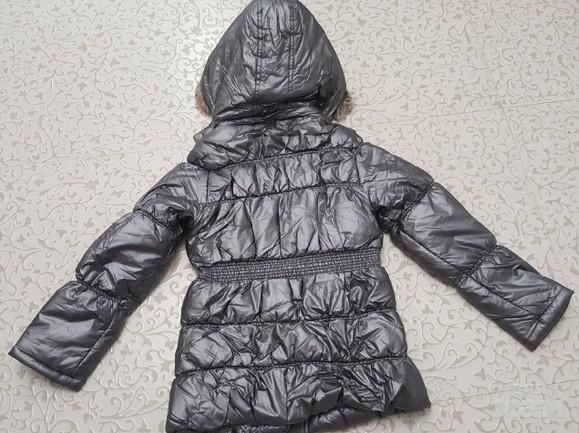 4. Нежная романтичная курточка, комбинирование стёганой и нестёганной ткани, эффект «юбочки» в нижней части. Бантик по талии легко застёгивается на кнопку, являясь декоративным акцентом. Удобный капюшон, брендированная фурнитура на плече. Рост 92 (2 года) реально 92-98 Цена 3000 руб