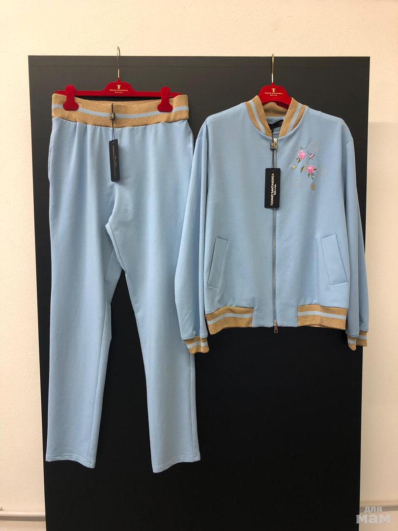 размеры от 38ит до 54ит (+2рус). Очень советую, не убиваемые костюмы, ни в стирке, ни в жизни. 250 евро, предоплата 30%, получение май. Сегодня ездила в магазин, 38500руб стоит,только черный цвет, цветные отлотш только что