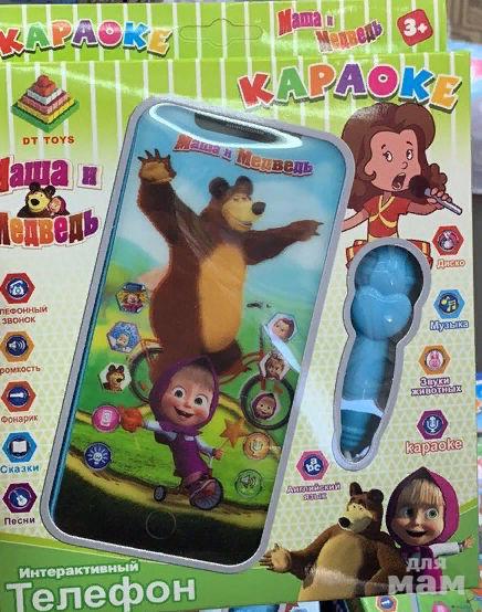 Функции: телефонный звонок, громкость, фонарик, сказки, песни, диско, музыка, звуки животных, английский язык, караоке.