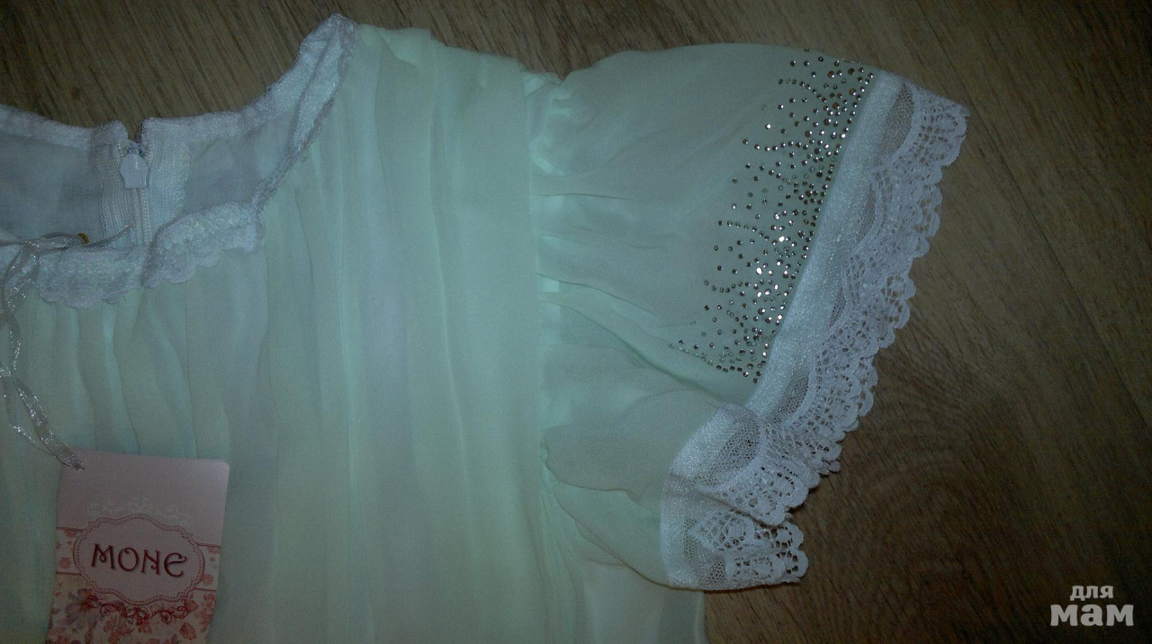 17) Платье новое Mone (украина дизайнерское) 134р. Шикарное, стразы горят (приклеены намертво).Цвет мятный.Ткань нежнейшая натуральная. Подклада хлпок 100%.Сзади молния. Очень нарядное,смотрится нежно 1500руб