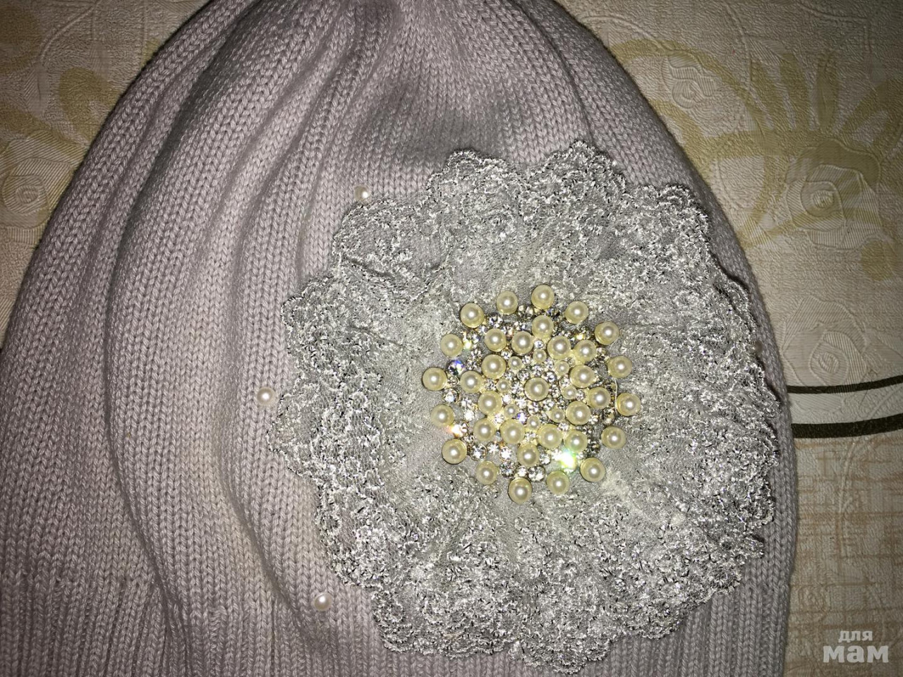 15)Шапочка Chobi Чоби 52-54р.Состояние новой.Цвет серый.Хлопковая. Украшение цветок из кружева и жемчуга. Очень красивая. 700 РУБ