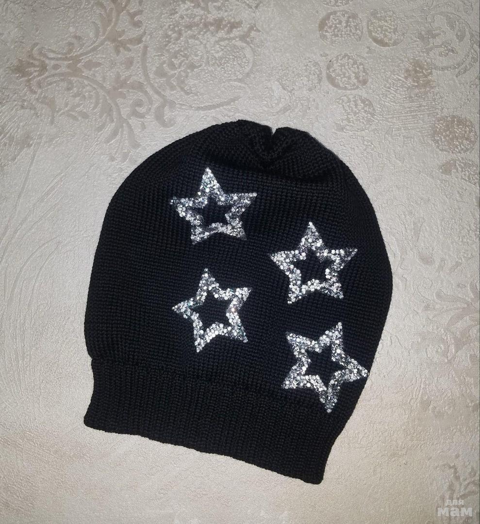 Звезды. Без них в этом сезоне тоже никуда. они на обуви, они на принтах одежды, они в нашей душе)))) тоже удлиненная версия шапки, но уже по нижу резинка. Подойдет на ОГ 53-56. Черный меринос. - 1300.