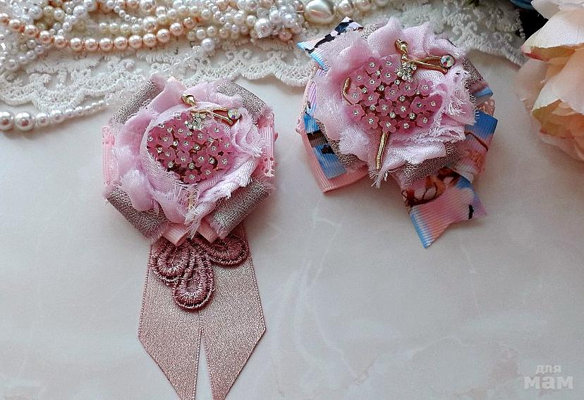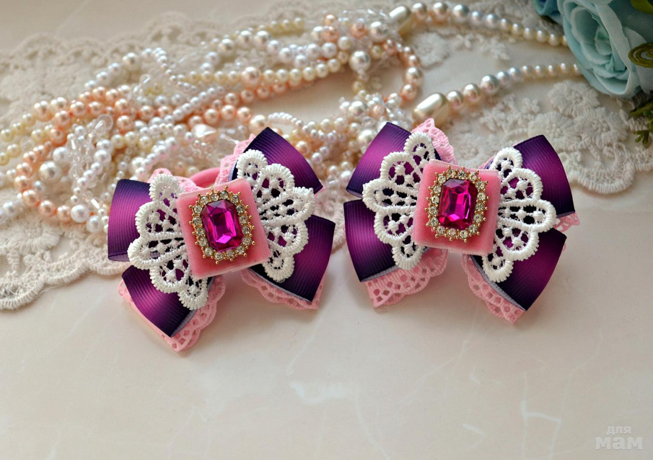 5. Небольшие бантики с использование кружева, градиентной ленты и фурнитуры, 350 руб пара