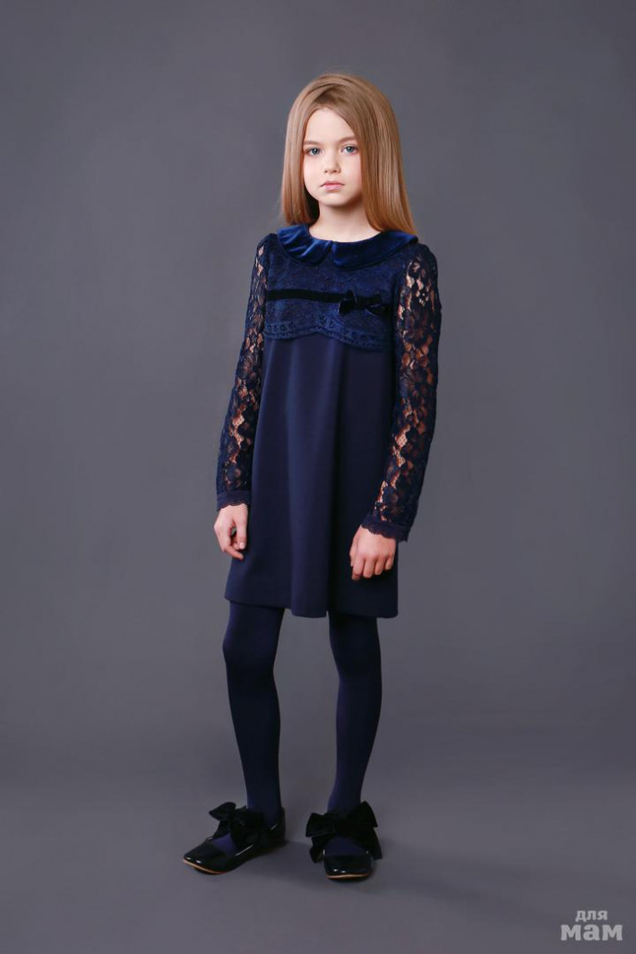 1913-2 платье понтирома, кружева, рукав 3\4+съемный воротник синий состав 50%вискоза 40%полиэстер 10%лайкра размер 122-140 цена 3150