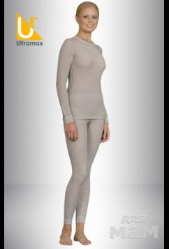 Женский комплект: футболка с длинным рукавом, круглый вырез, эластичные манжеты, плоские швы. Длинные кальсоны, открытая мягкая резинка, эластичные манжеты, плоские швы.