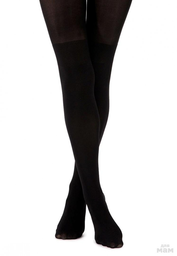 Однотонные женские колготки плотностью 20 DEN. Черное классическое плетение (20 DEN) в нижней части паголенка комбинируется с плотной текстурой (60 DEN), имитирующей гольфы.