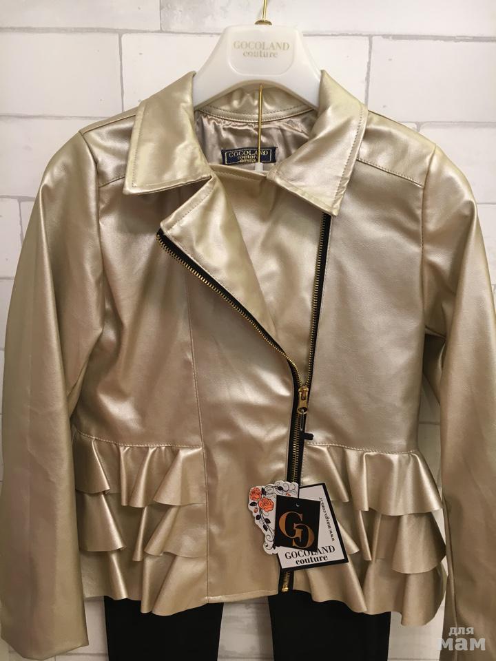 - Куртка из экокожи, хорошего качества, с подкладкой. Цвет: золотой. Замеры: длина - 50см., полуобхват груди – 38см., рукав по внутренней стороне – 37см.