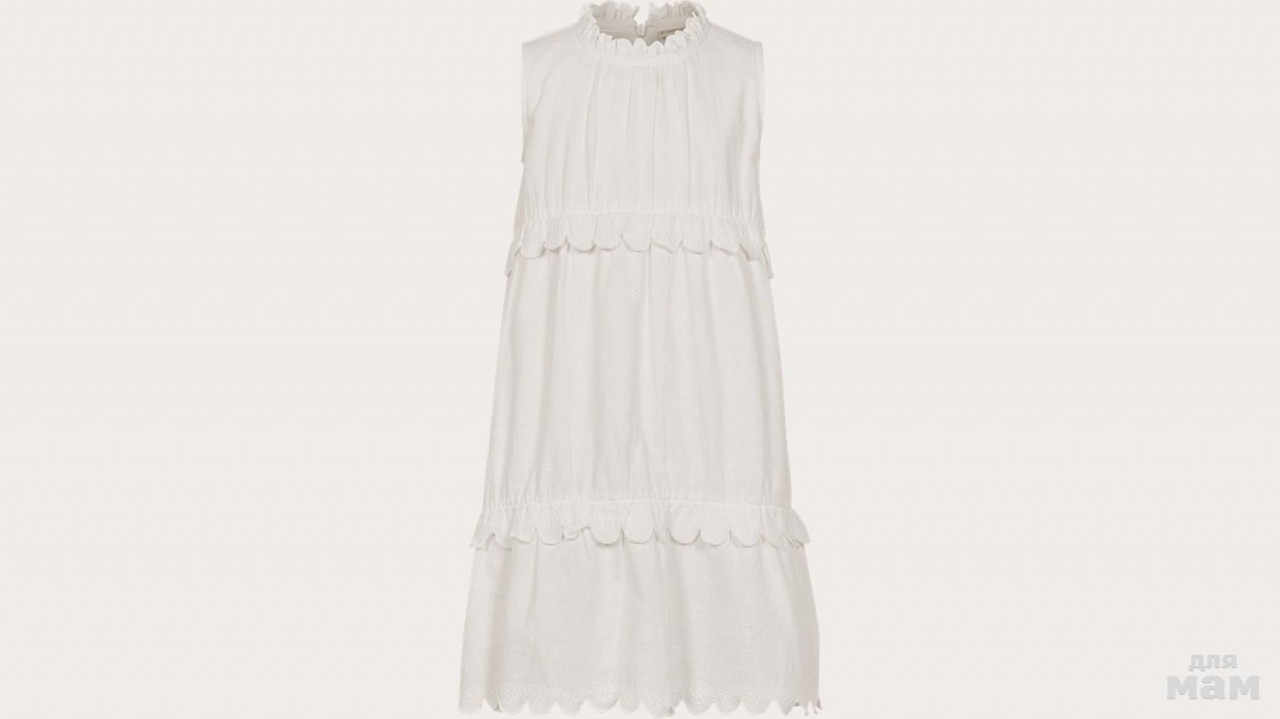 Это платье - это по-настоящему красивое платье, которое воздушно и удобно носить. Платье - прекрасное дополнение к гардеробу вашего ребенка. У платья есть много полноты и длины, которая поражает только вокруг колена. С его видом без рукавов и красивыми женственными рюшами на плечах и шее вы можете ожидать, что это платье станет главным хитом для вашей девушки. Платье можно застегнуть на шею с помощью пуговиц.
