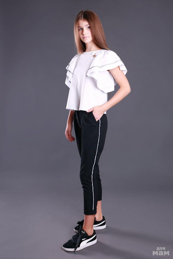 1923 блузка котон, рукав волан белый состав 5% лайкра 5% вискоза 90% хлопок размер 146-164 цена 1960 1600